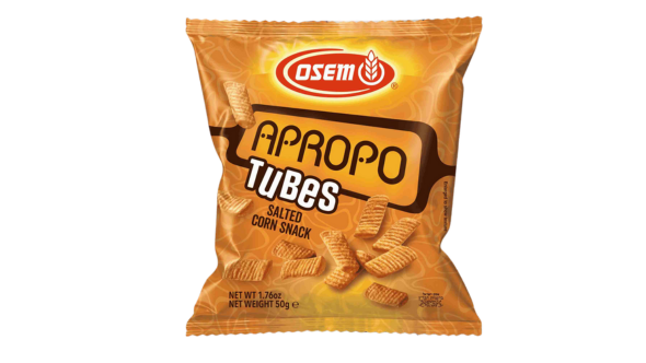 Osem Apropo Tubes are known for their crunchy texture and savory flavor. These snack tubes are made from corn, lightly salted, and provide a light and crispy experience. It can be enjoyed as a snack on its own or can be paired with dips and spreads.